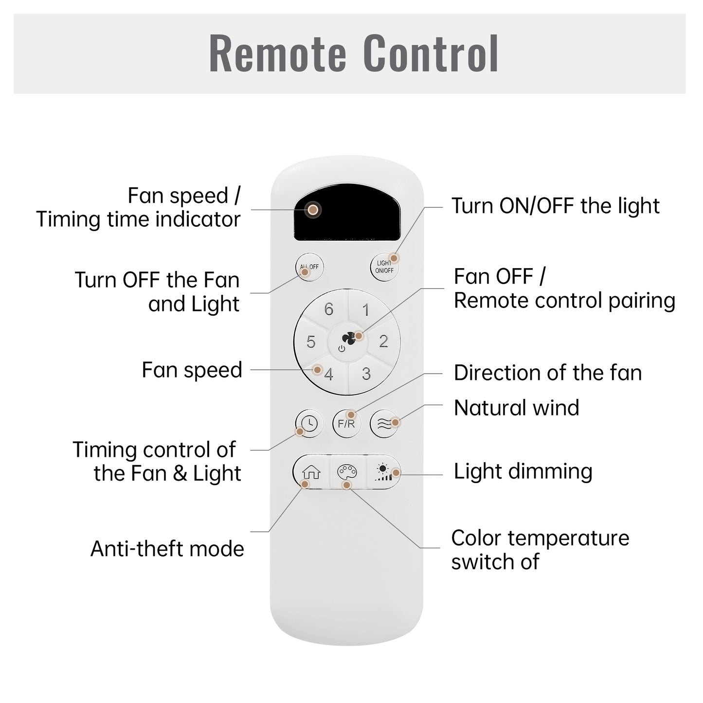 - Equipped with a remote control, this fan offers 6 wind speeds and timer settings for convenience, simplifying your life while enhancing your home’s air circulation.