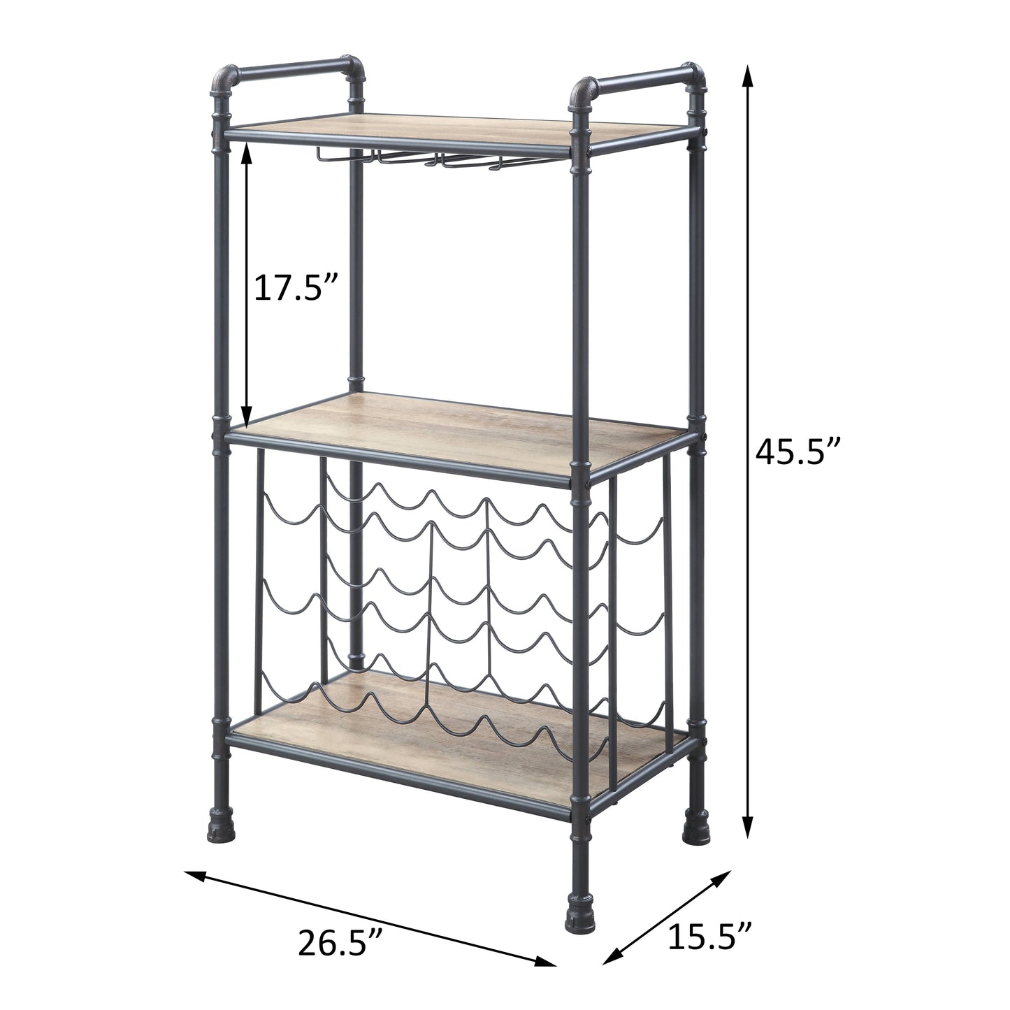 Featuring a capacity of up to 18 bottles and racks for wine glasses, this unit enhances both storage efficiency and accessibility. The rustic charm of the antique oak finish paired with sandy grey tones provides a distinctive look that complements a variety of decor styles.