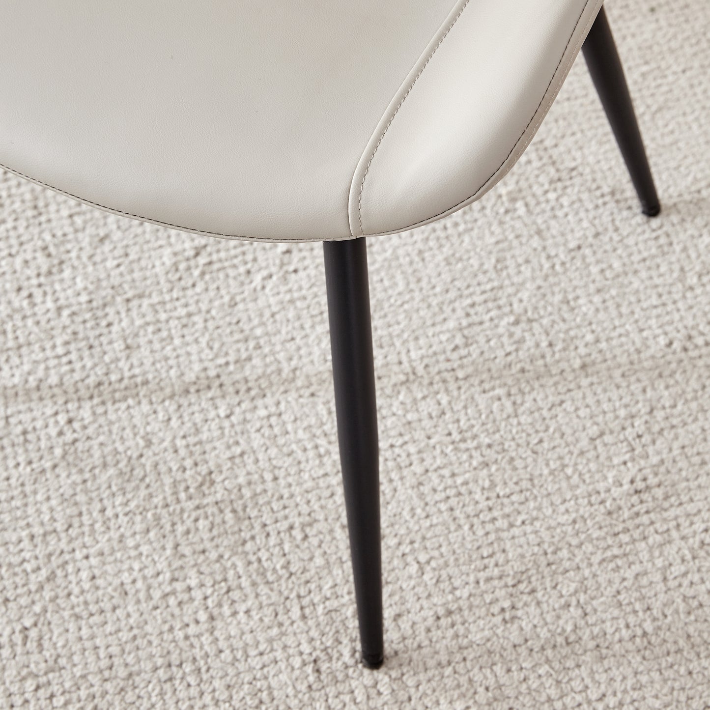 - Upgrade your dining area with these stylish chairs, featuring a light gray faux leather cushion designed for extended comfort during meals or meetings.