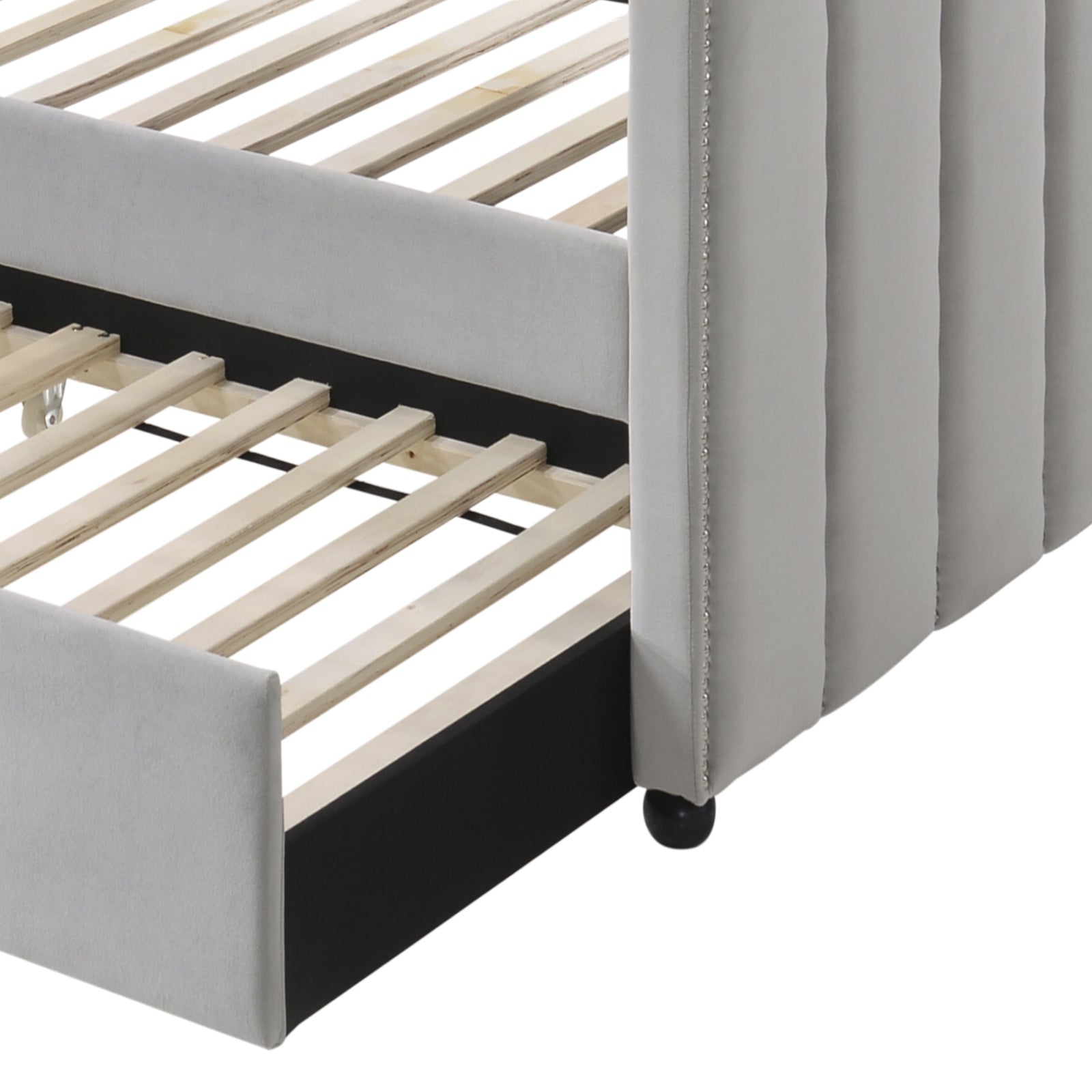 Comfortable Daybed with Roll-Out Trundle - Gray Velvet