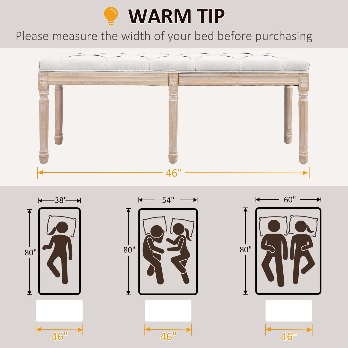 Comfortable Upholstered End of Bed Bench with Vintage Style - Cream White