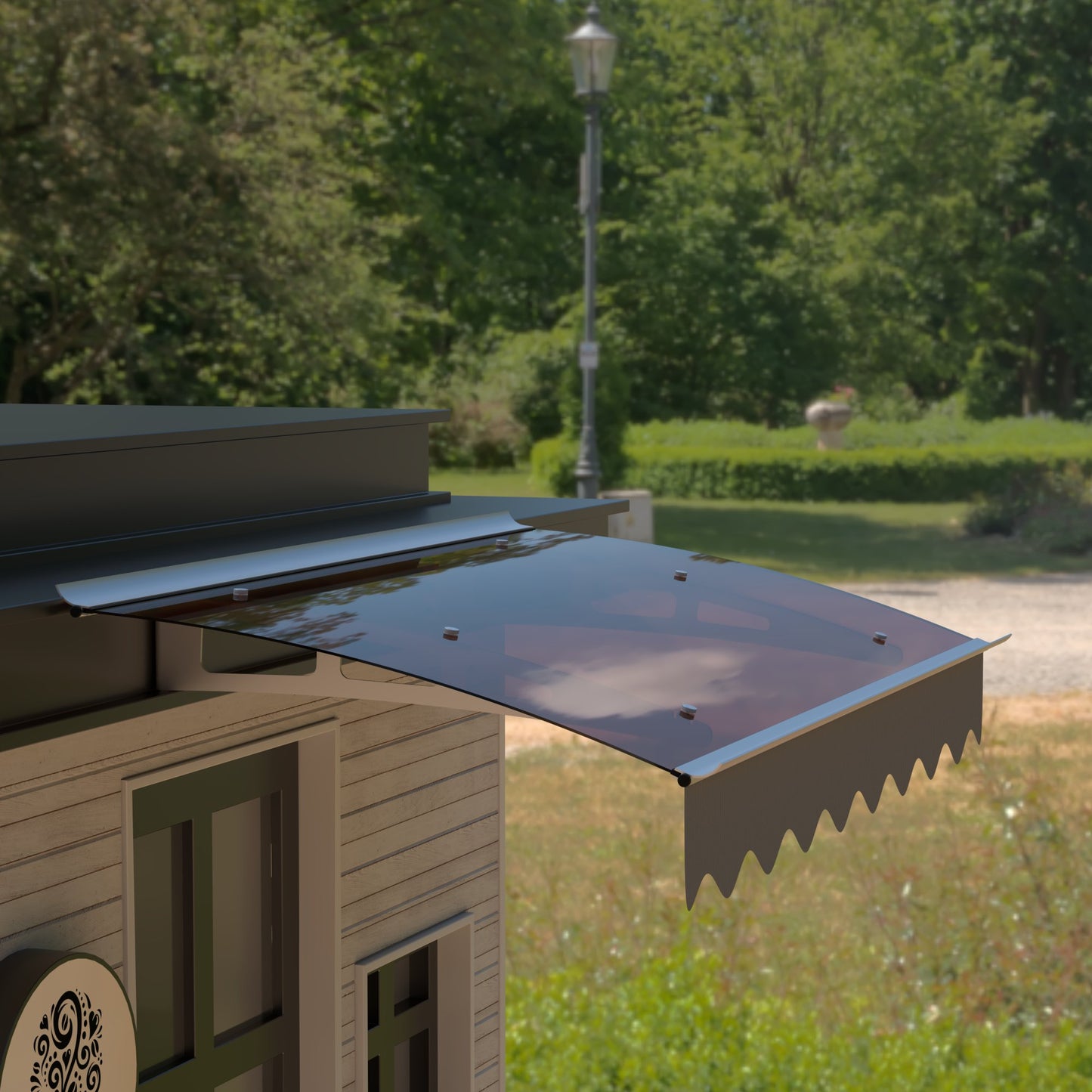 Durable Wall-Mounted Awning for Door or Window Protection, Brown Roof