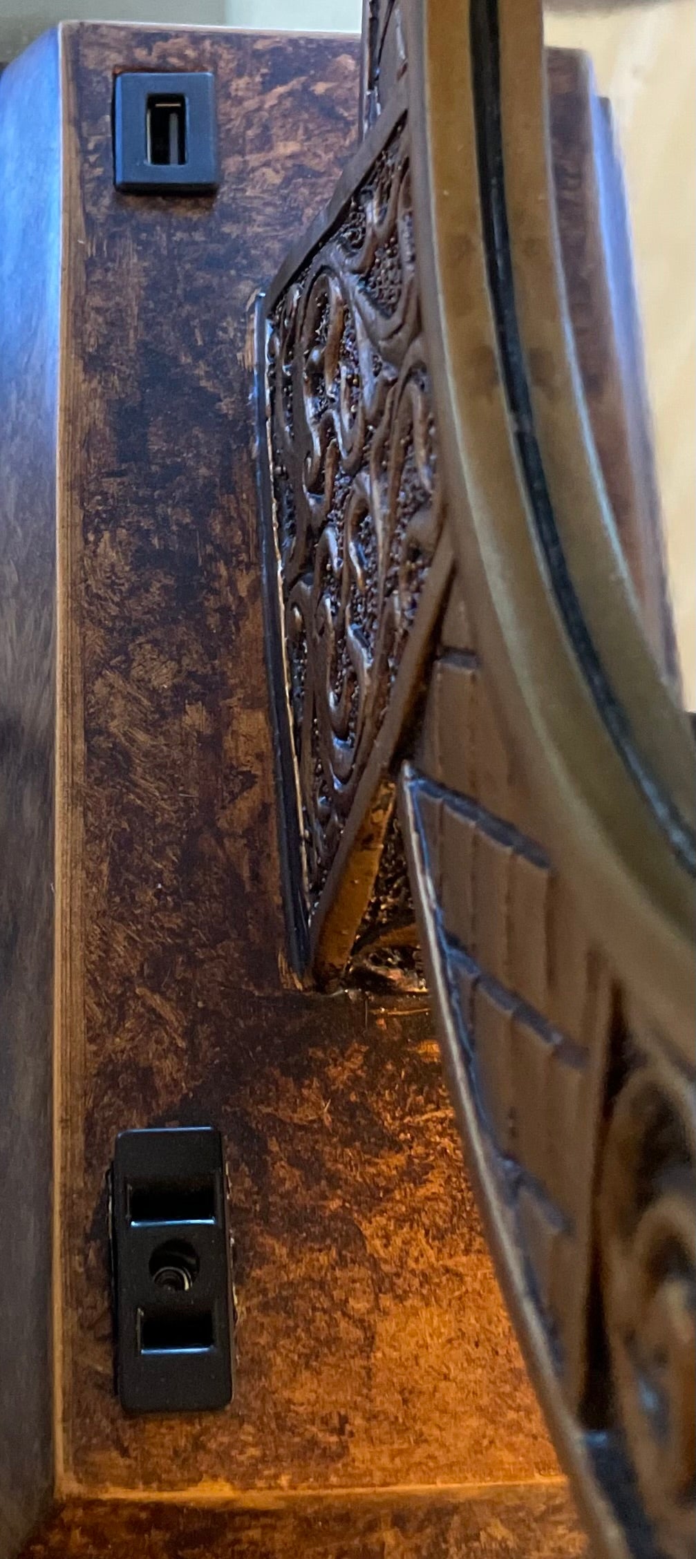 - The lamp includes an electric outlet and USB port on the base, allowing for convenient charging of devices, keeping your essentials close at hand.