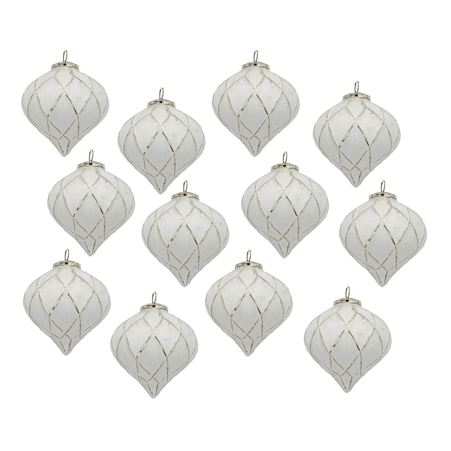 - Transform your holiday setting with a set of 12 glass ornaments, perfect for adding sparkle to your Christmas tree or event decor.