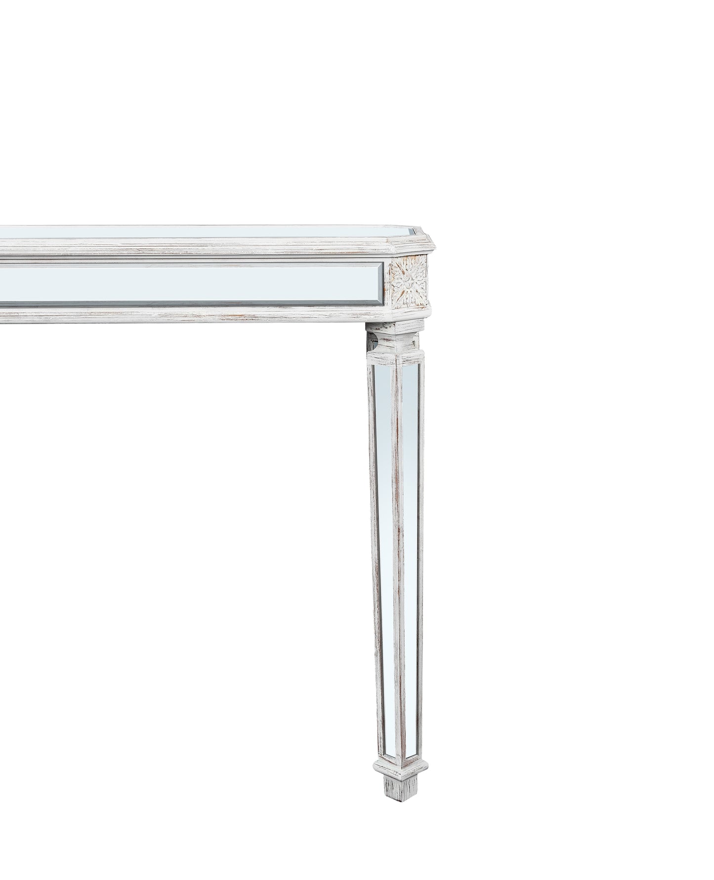 Constructed from solid wood and MDF with mirrored glass, this console table provides both stability and a stunning visual appeal, designed to elevate your home decor.