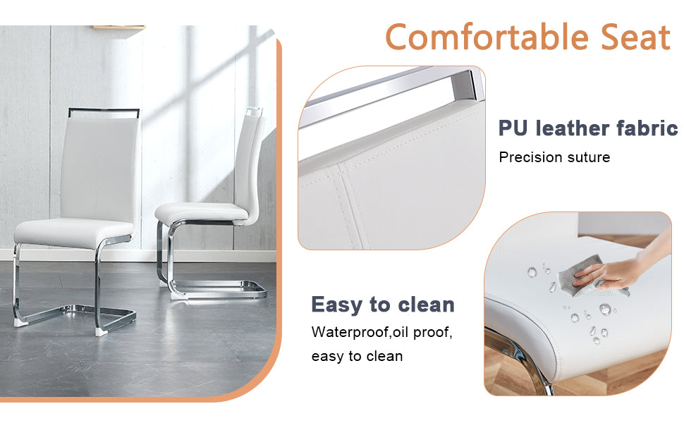 - Soft white PU chairs with good elasticity offer a comfortable seating experience, suitable for long meals and everyday use; easy to wipe clean.