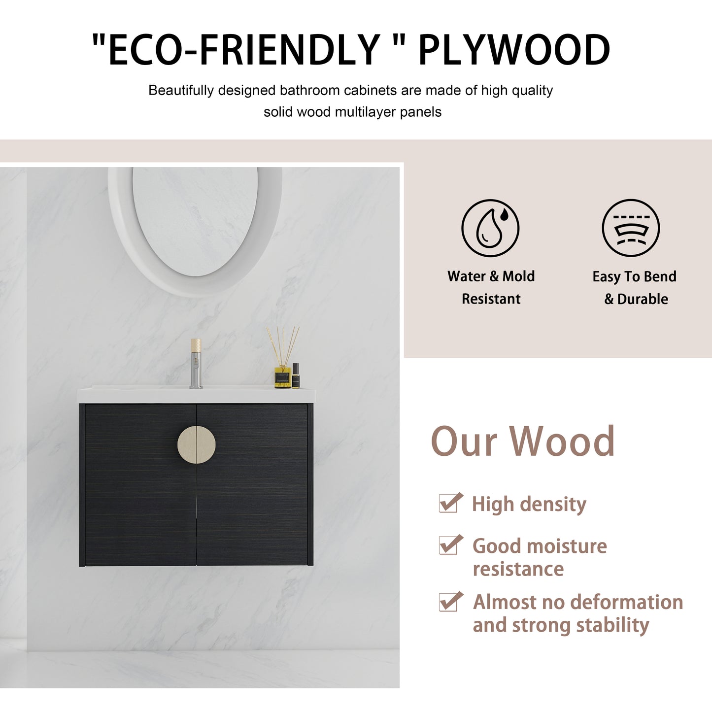Constructed with durable plywood and finished with scratch and water-resistant melamine, this vanity withstands moisture and humidity, making it suitable for any bathroom environment. The ceramic basin is crafted for a smooth surface that is easy to maintain.