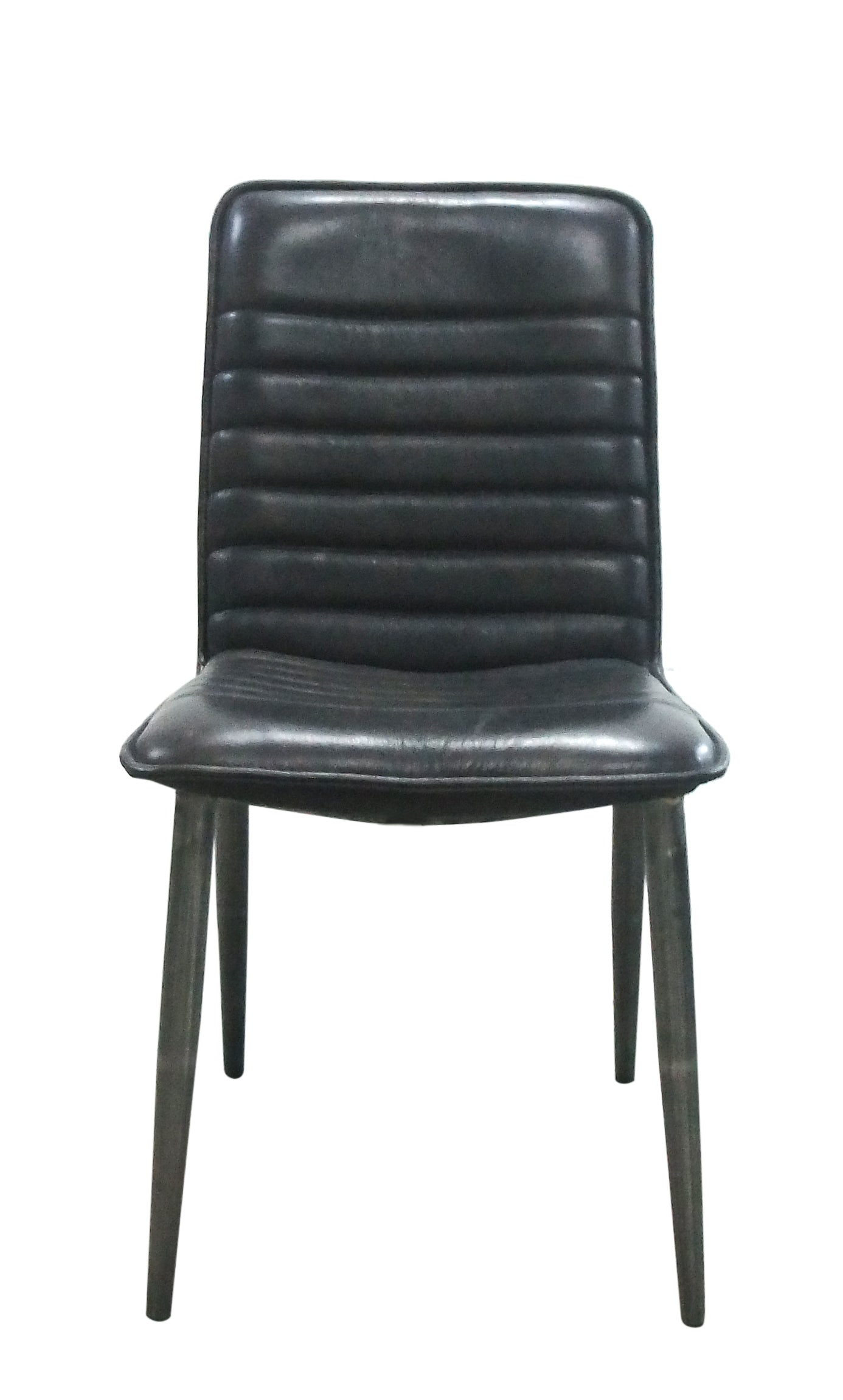 This set of two side chairs features black top grain leather padded seats that provide both luxury and comfort. The metal tapered legs in an antique black finish add retro flair while ensuring durability.