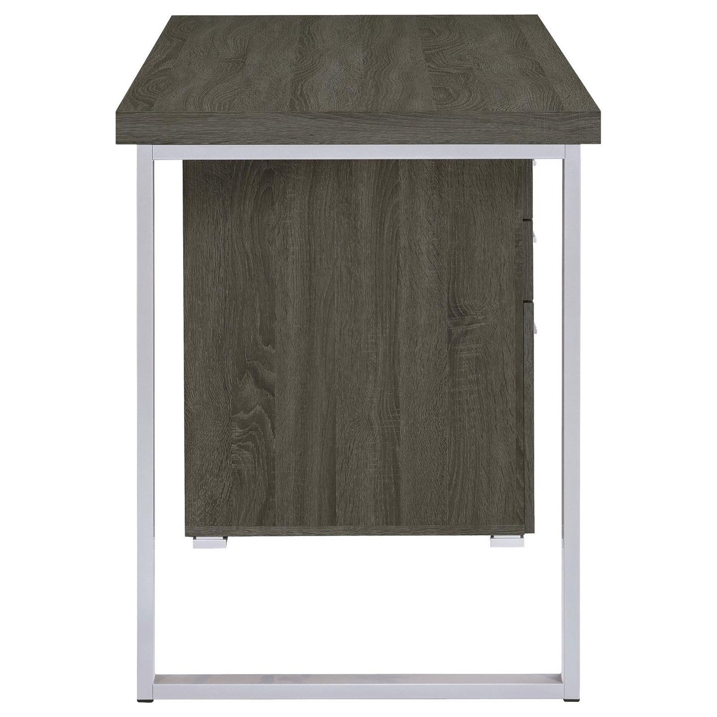 With its three spacious drawers, including storage for legal and letter-sized documents, this desk ensures that your essentials are organized and within reach. The large work surface gives you the space needed to work efficiently, while the sleek grey and silver finish adds a touch of elegance to your workplace.