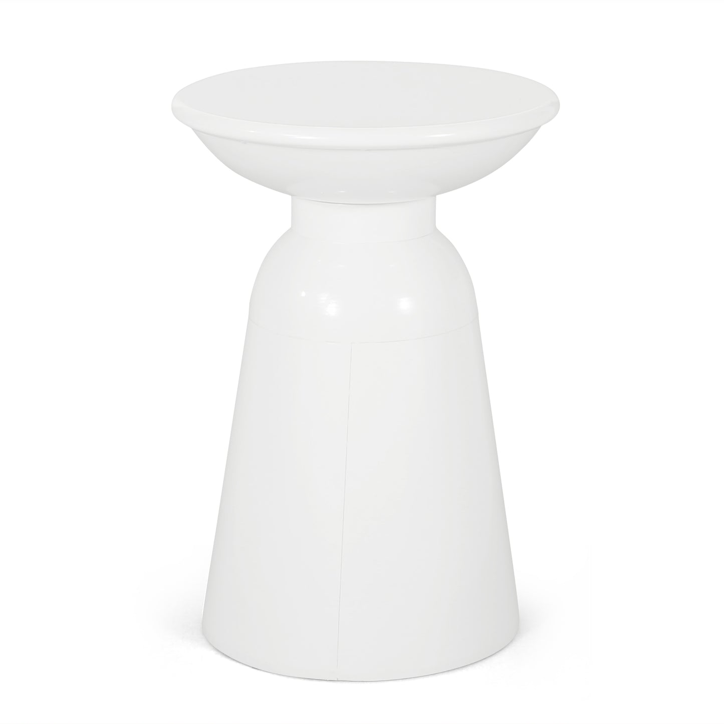 - Transform your outdoor area effortlessly with this modern end table, featuring a sleek pedestal structure and circular design, ideal for holding snacks or drinks.