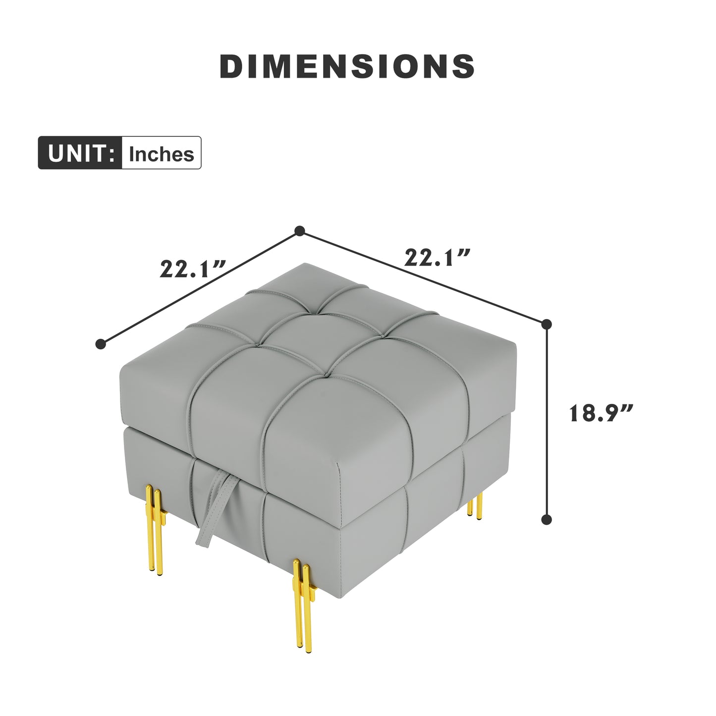 Enhance Your Space with 22 Inch Storage Ottoman in Gray