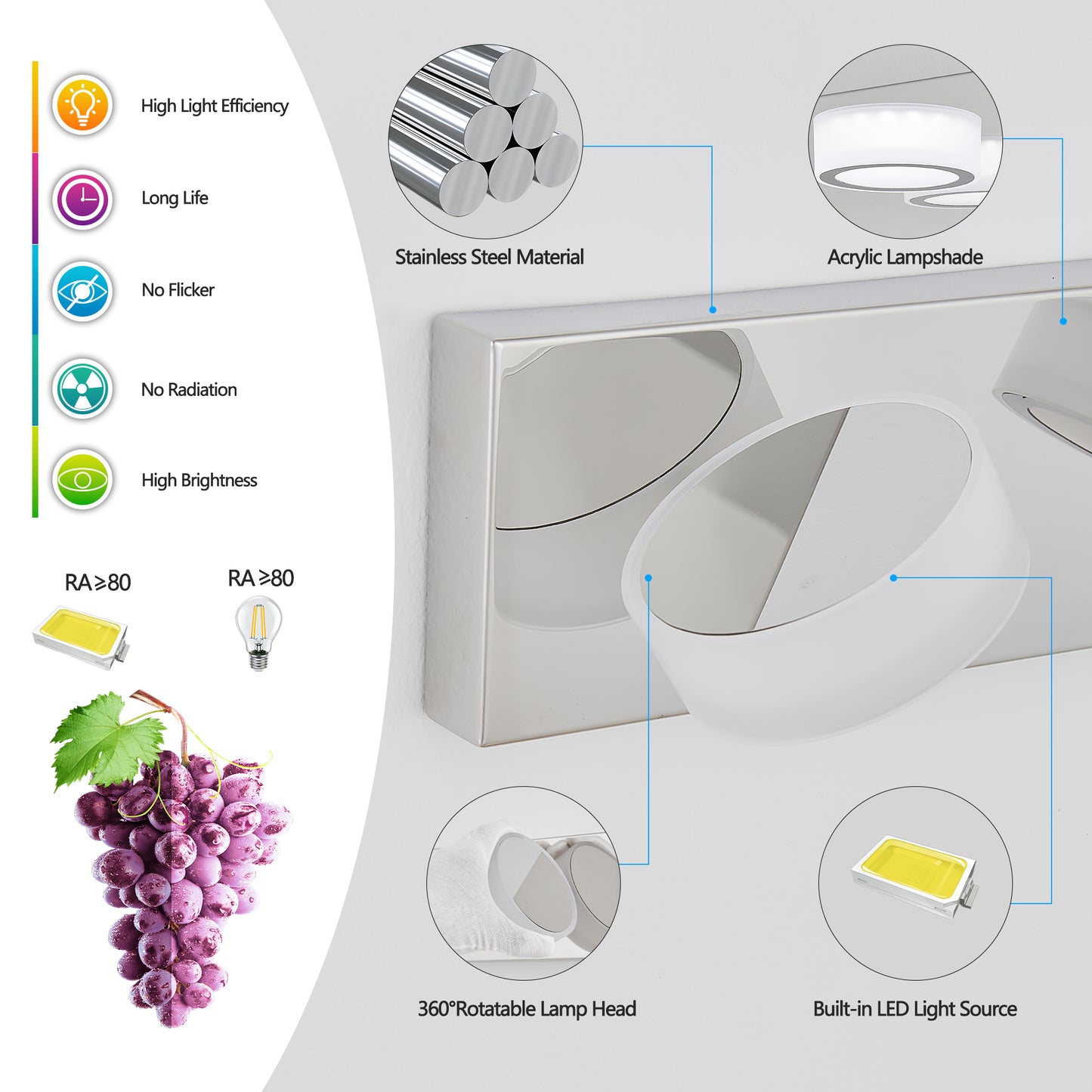 This LED vanity light is perfect for bathrooms, dressing rooms, and other spaces where high-quality lighting is essential. It's ideal for home owners and renters alike who want to elevate their space without extensive renovations.