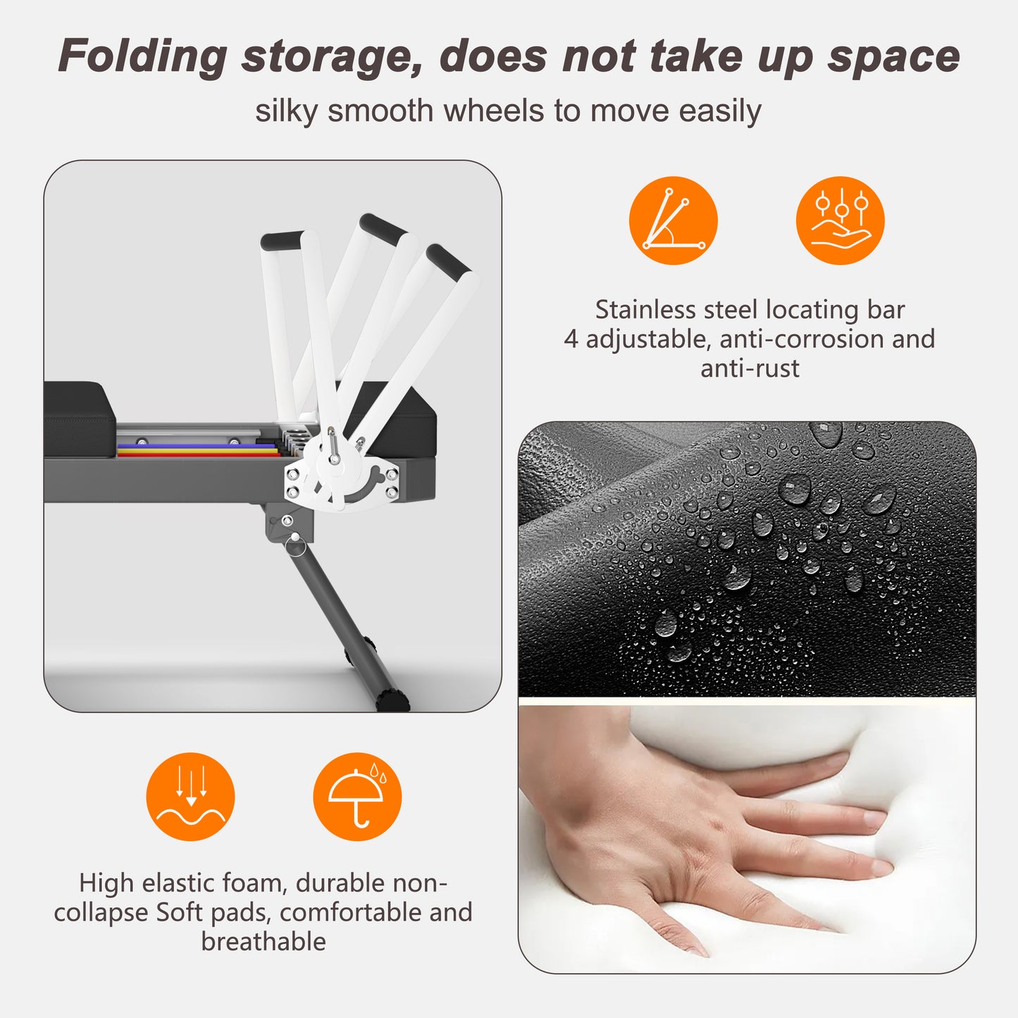 Finding effective fitness equipment that fits into small spaces can be challenging. This folding Pilates reformer addresses this issue by allowing for easy storage without sacrificing performance.