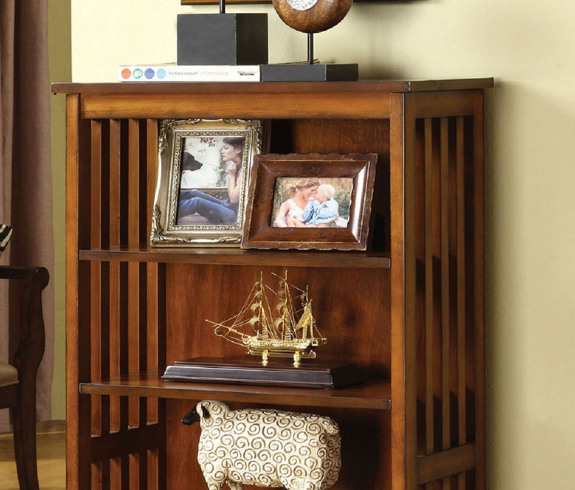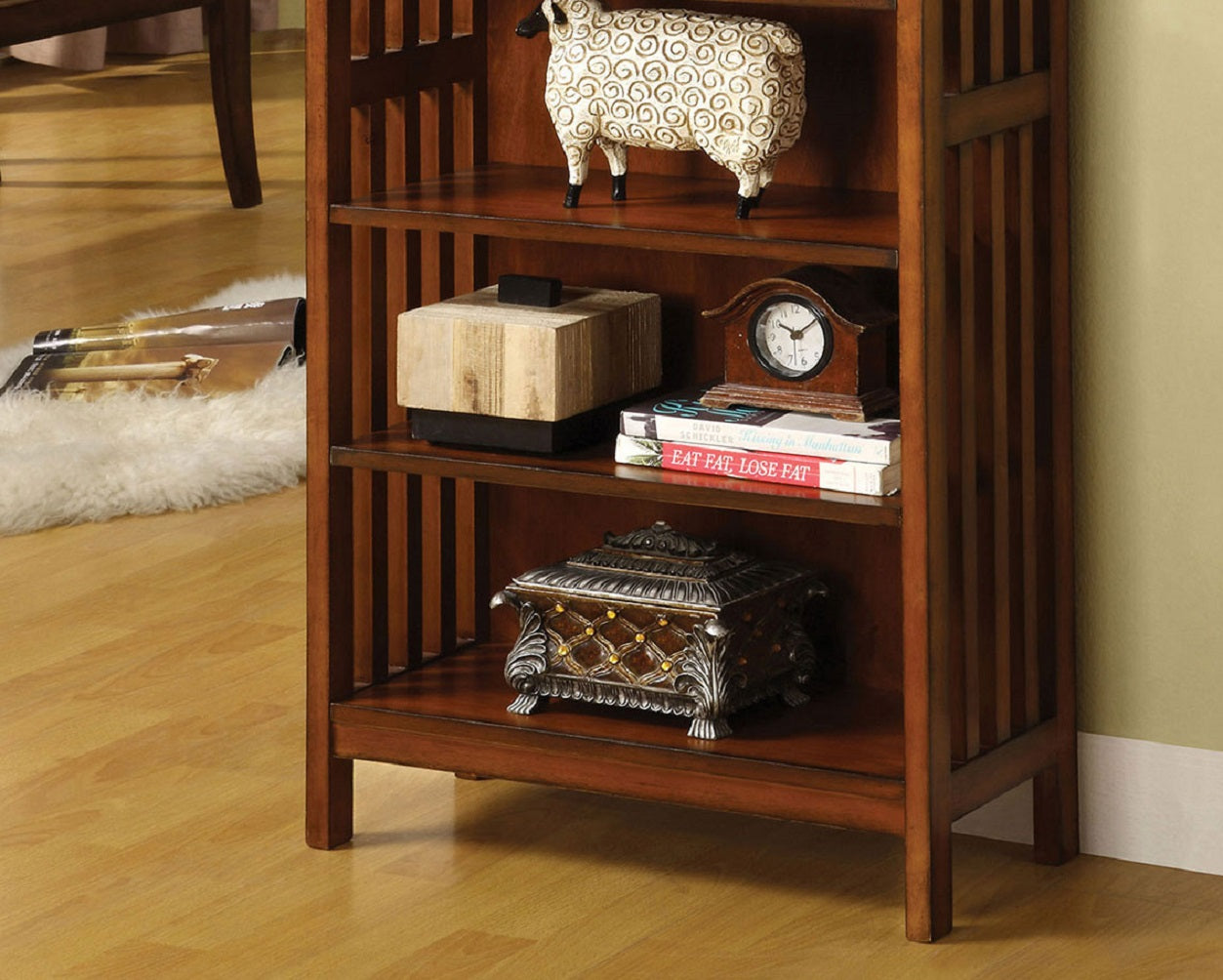 Functional Media Shelf with 5 Shelves for Books and Media - Antique Oak Finish