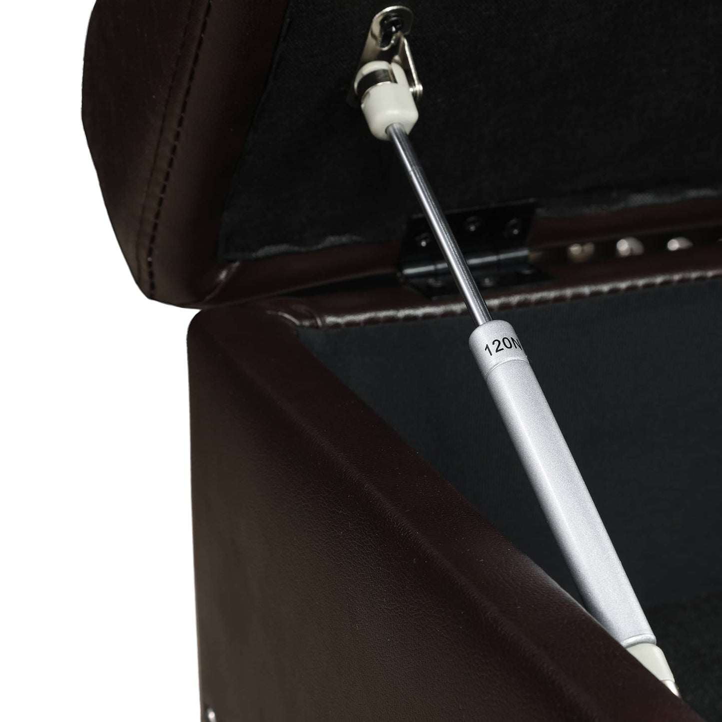 Constructed with a solid wood frame, double spring system, and easy-to-clean faux leather, this ottoman combines durability with elegance.