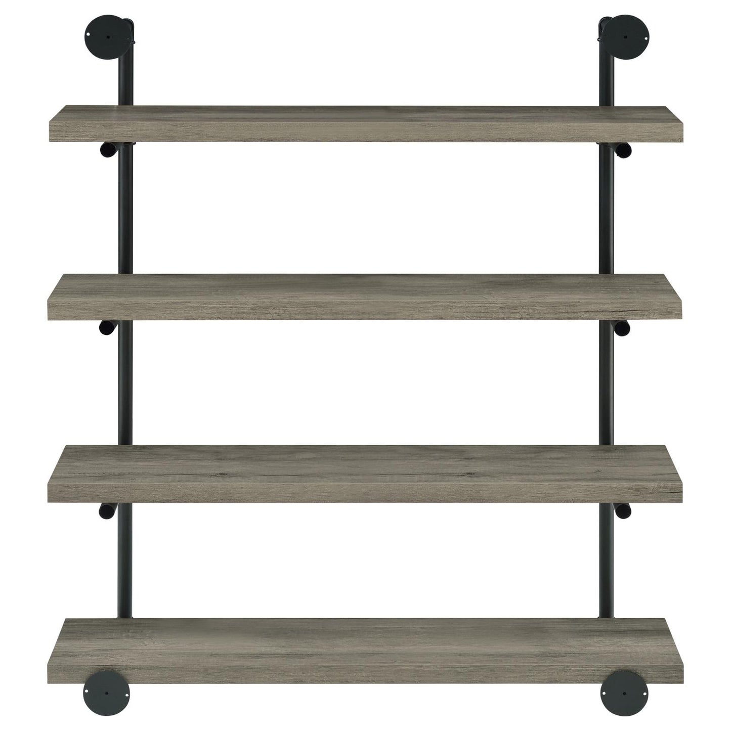Crafted with a unique plumbing pipe metal frame and rustic grey driftwood finish, this shelf balances rugged utility with modern aesthetics. The four open shelves allow for easy access and organization, making it ideal for showcasing books, photos, or decorative pieces.