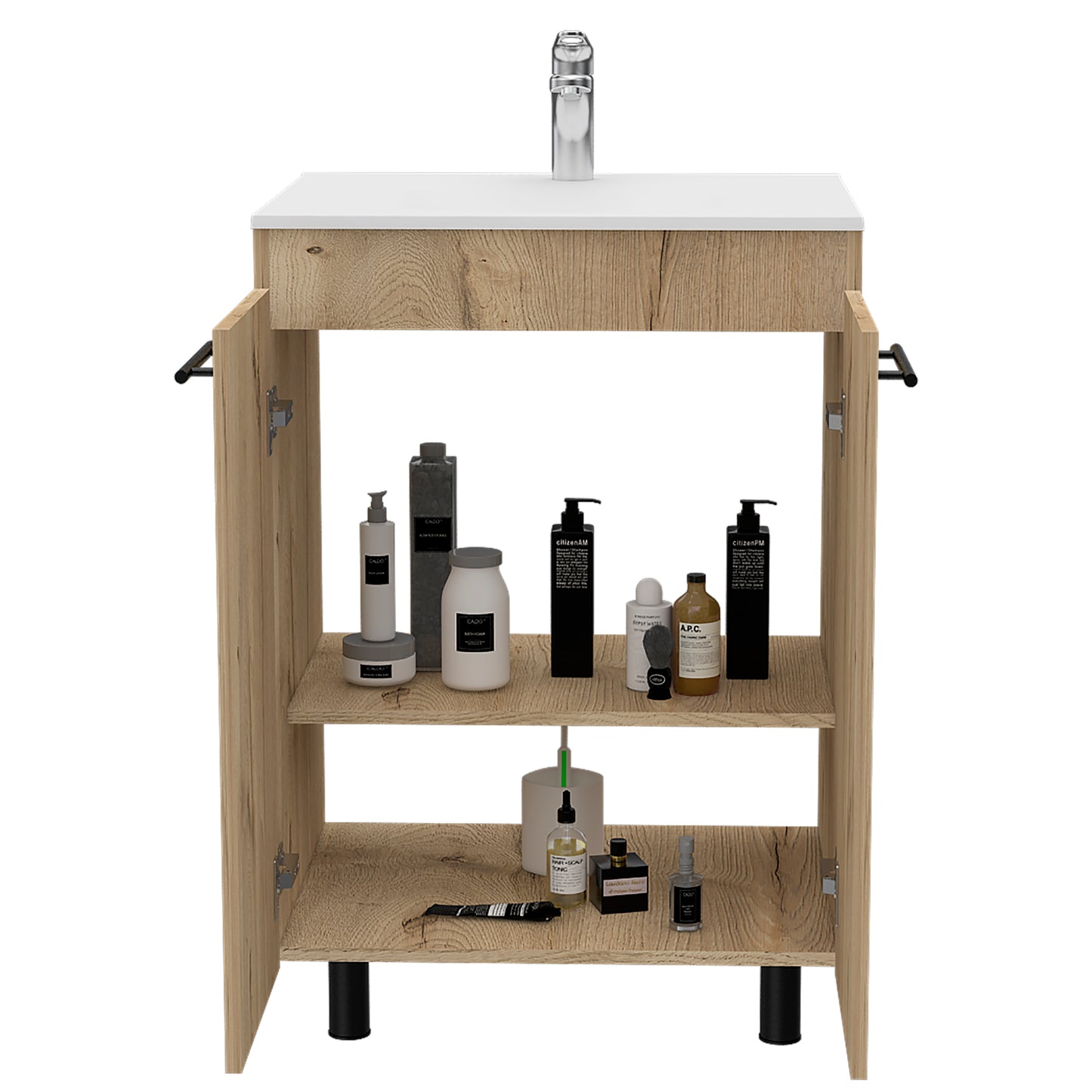 Constructed from high-quality particle board, this cabinet is built to last. Its drop-in sink design not only saves space but also creates a cohesive look for your bathroom. With dimensions of 23.8 inches wide and 34.1 inches tall, it combines style with functionality.