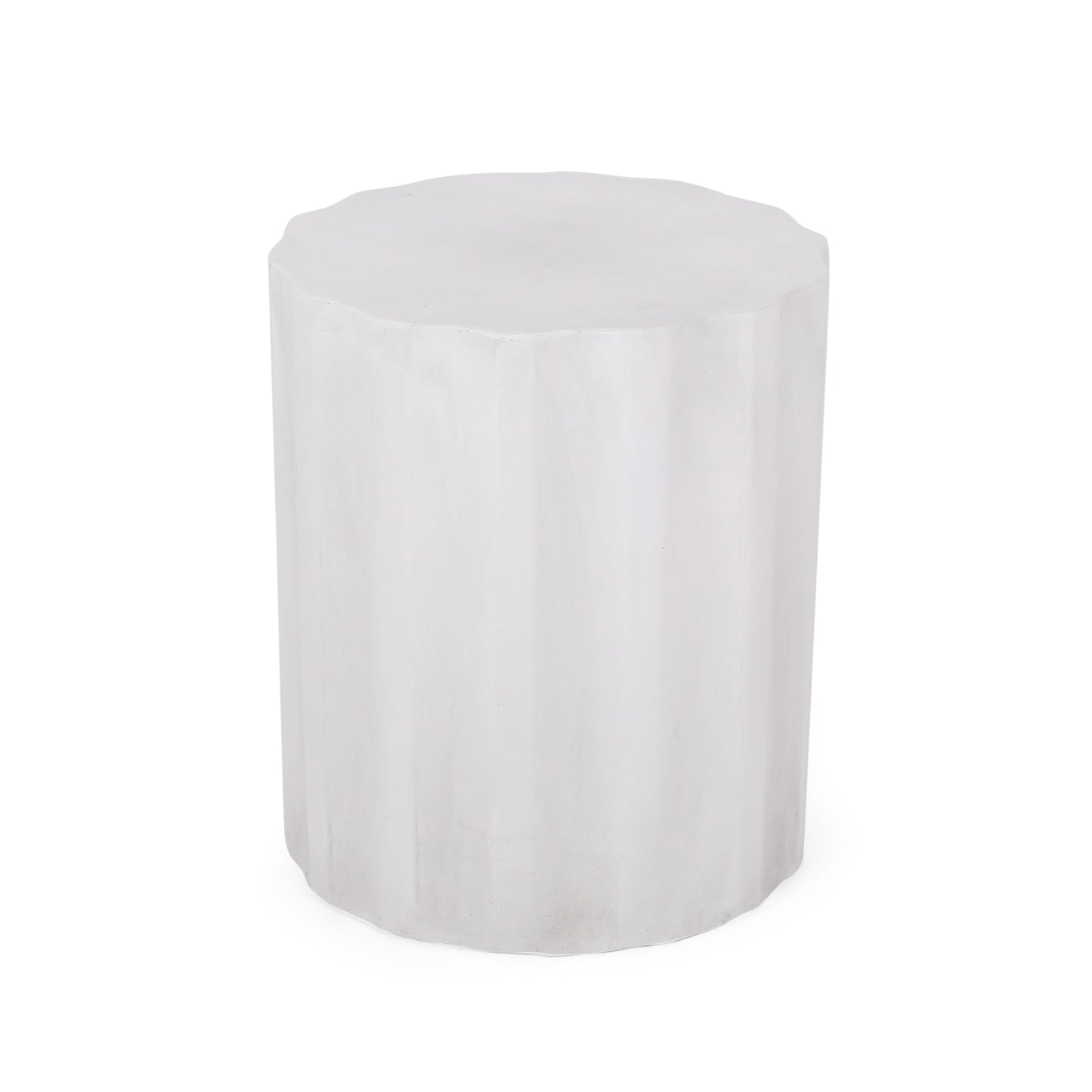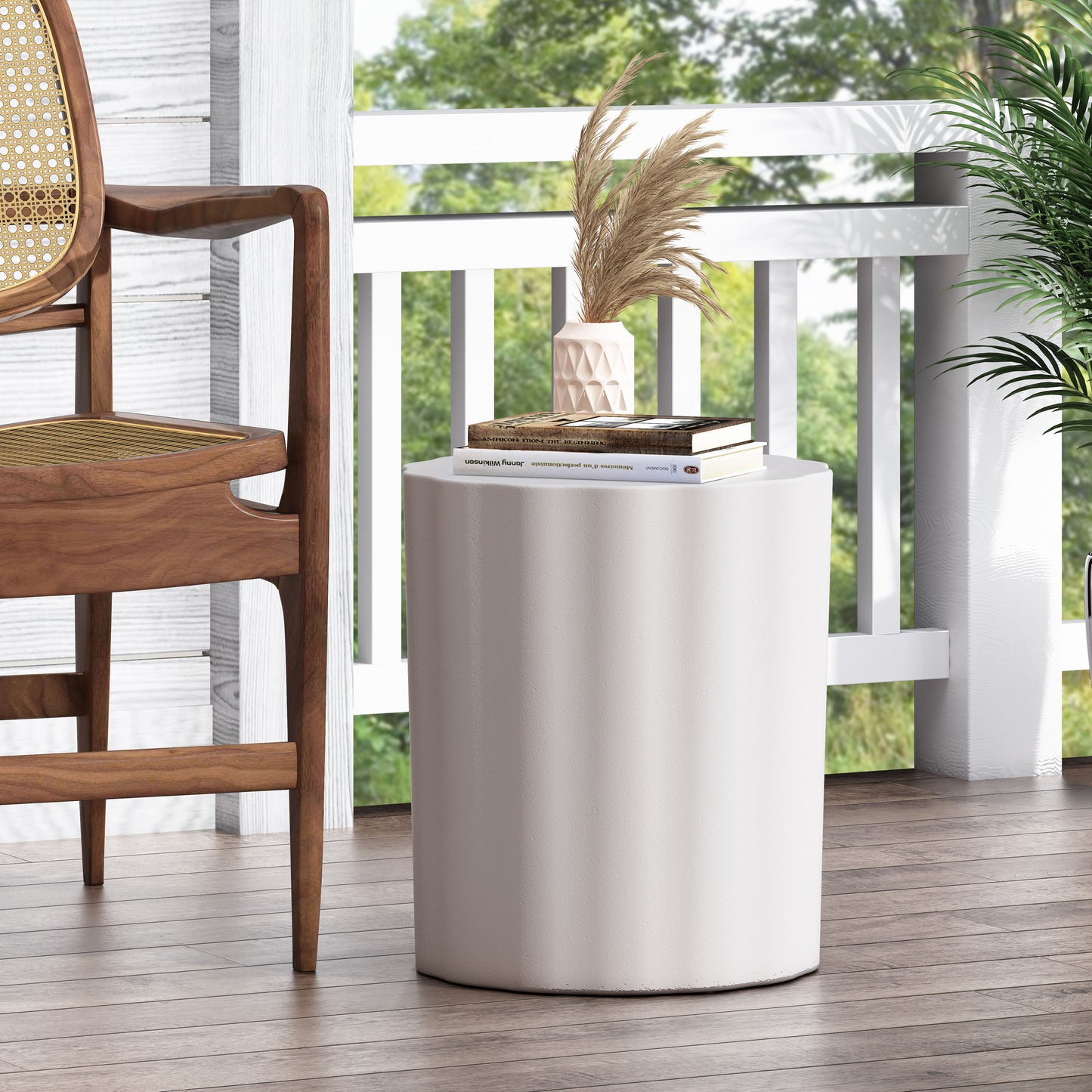 This side table features a modern design with a subtly fluted cylindrical shape and wave edges, perfect for creating a contemporary look. Its lightweight concrete construction ensures durability while remaining easy to move around as needed.