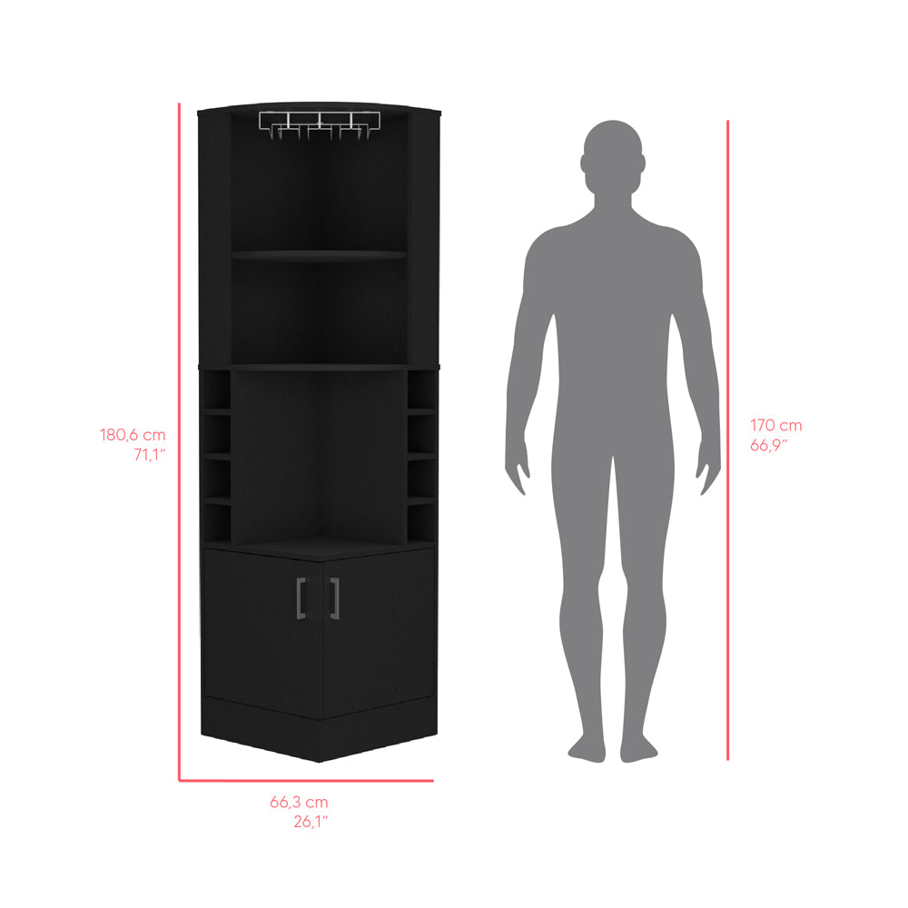 Maximize Corner Space with Black Bar Cabinet and Wine Storage