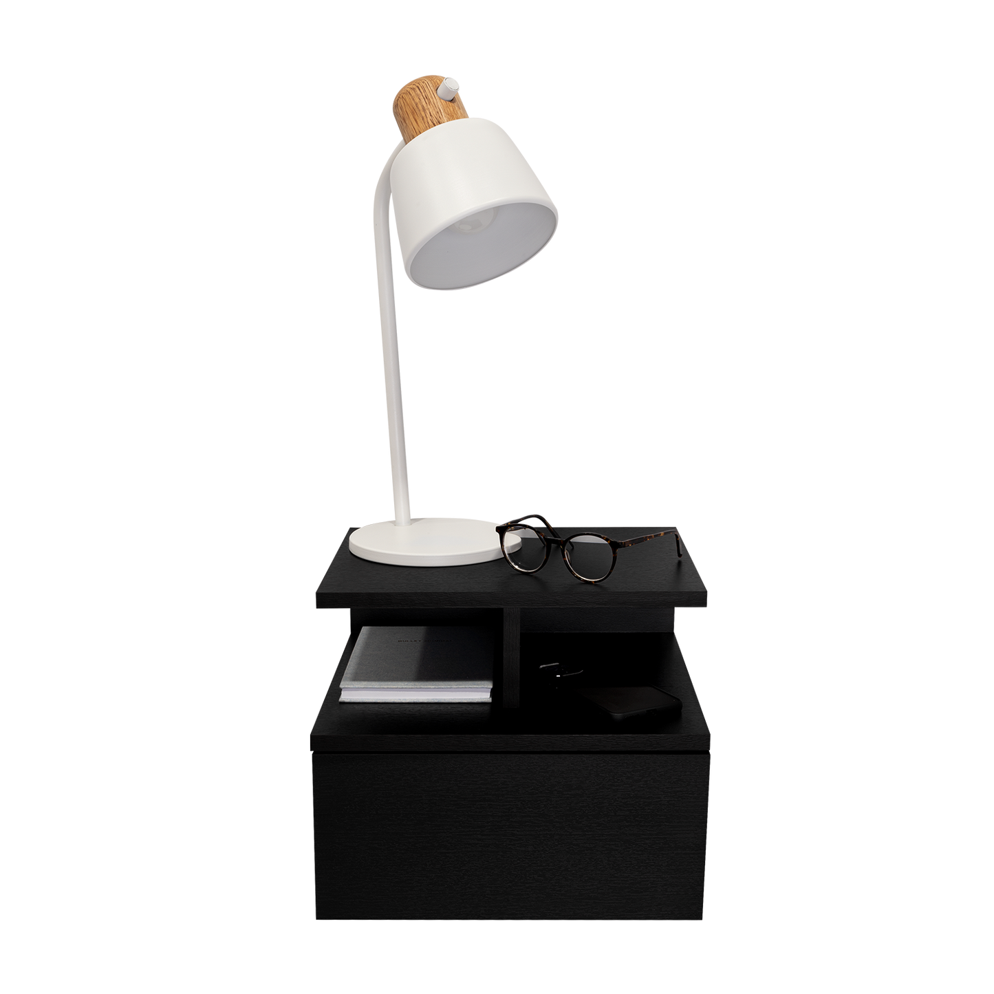 Maintaining your floating nightstand is simple. Use a damp cloth to wipe down surfaces and avoid harsh chemicals to preserve the finish and longevity of the material.