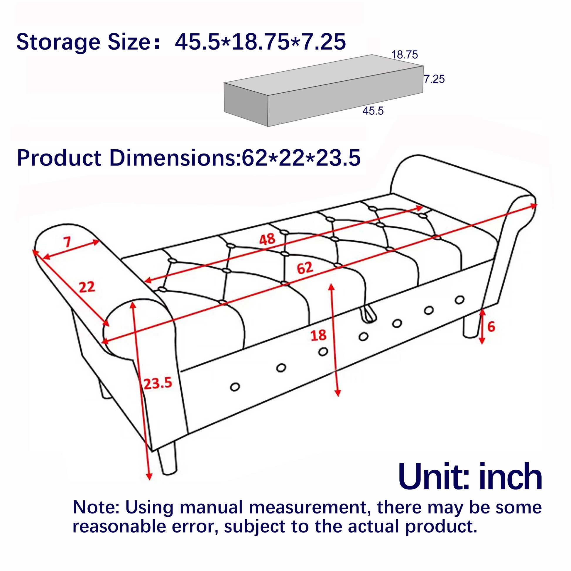 - Dimensions of 62 inches wide, 22 inches deep, and 23.5 inches high make it a perfect fit for smaller spaces without sacrificing functionality.
