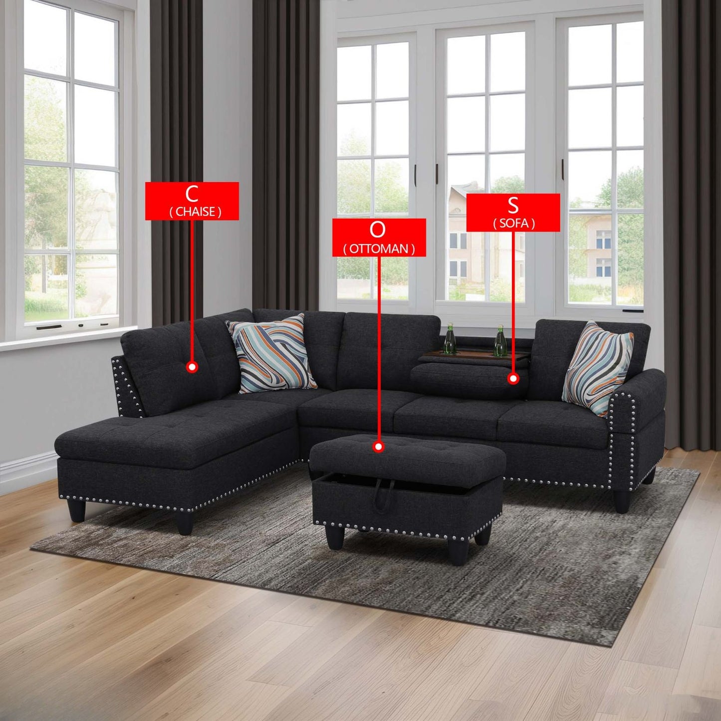 Upholstered in durable linen fabric, this sectional offers both style and ease of maintenance. The foldable console with cup holders adds a layer of convenience, ensuring your drinks are safe and accessible.