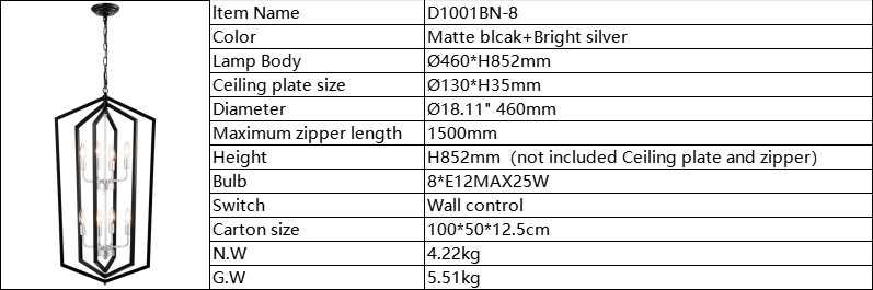 The chandelier's 8-light feature provides ample lighting, perfect for larger spaces such as dining rooms or kitchens. The matte black and silver finishes create a sophisticated look that suits both modern and traditional interiors.
