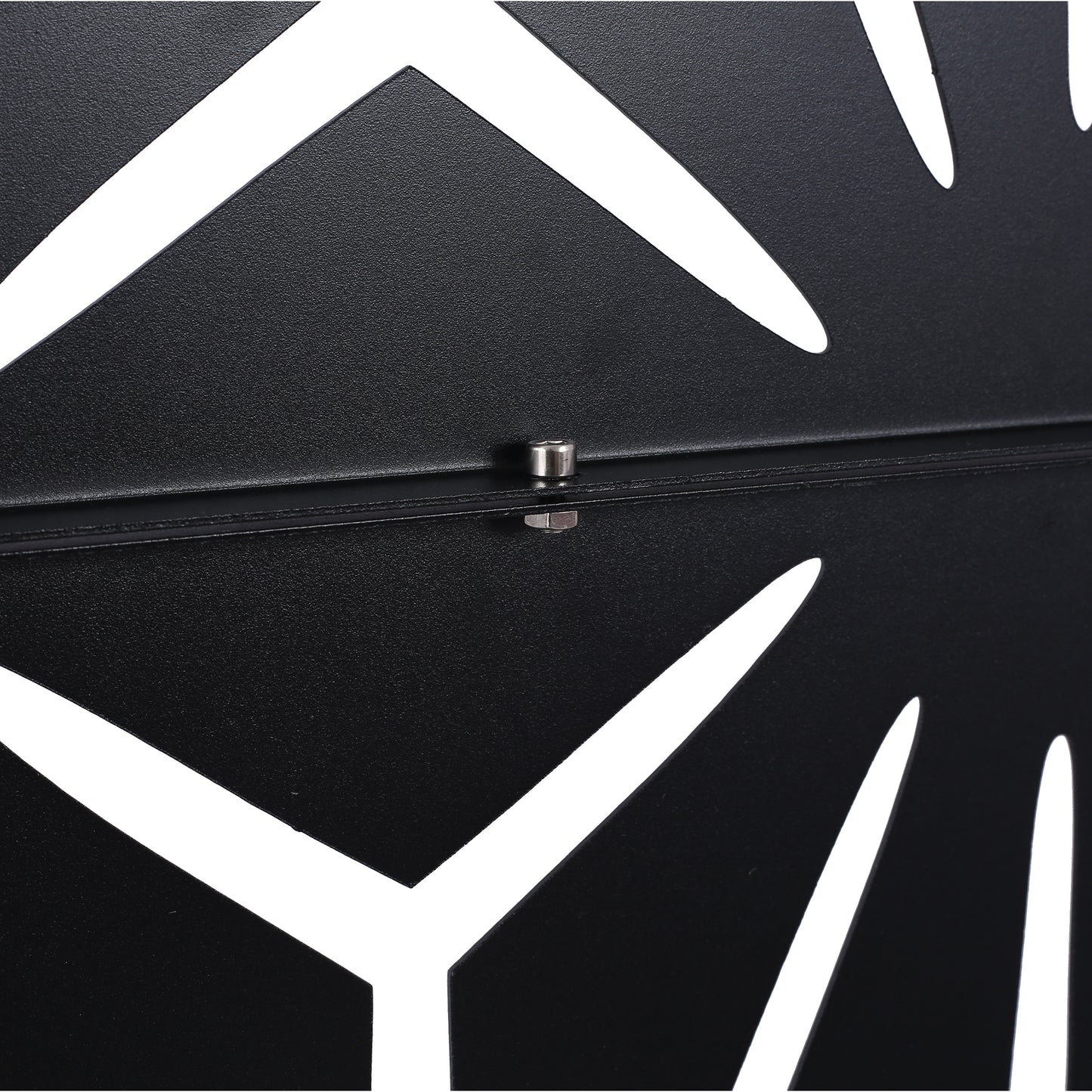 This freestanding decorative privacy screen measures 76 inches in height and 48 inches in width, making it an ideal size for various locations. It not only enhances privacy but also adds aesthetic value to your space. With its elegant black design, this screen suits both modern and traditional decors.