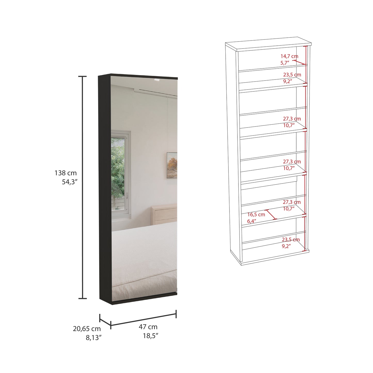 Featuring a stylish mirrored door, this shoe rack not only enhances your room's decor but also allows for convenient outfit checks. The black finish adds a modern touch, making it a great addition to various interior designs.