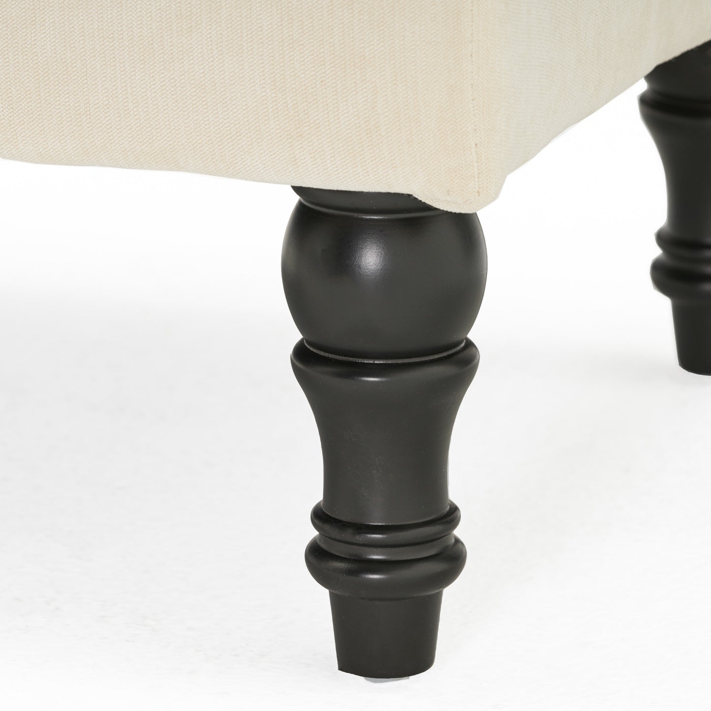 This ottoman features a plush pillow top for added comfort, adorned with delightful button tufting. The cream fabric brings warmth to any space while the sturdy turned legs ensure durability. Perfect for propping up tired feet or providing extra seating.