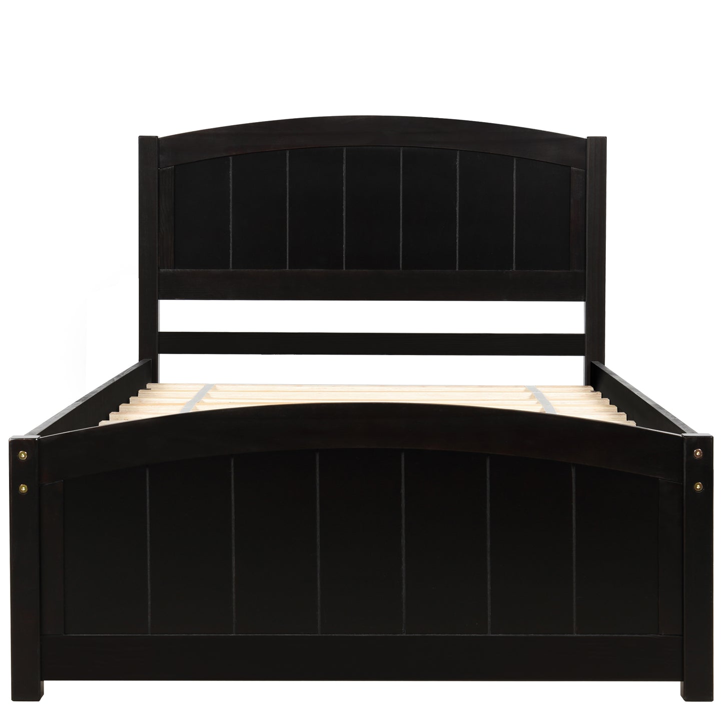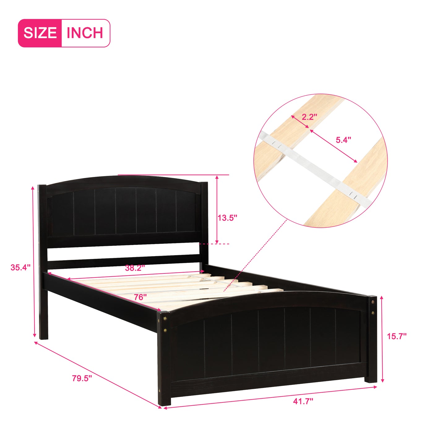 Stylish Wood Platform Bed with Headboard and Slat Support, Espresso