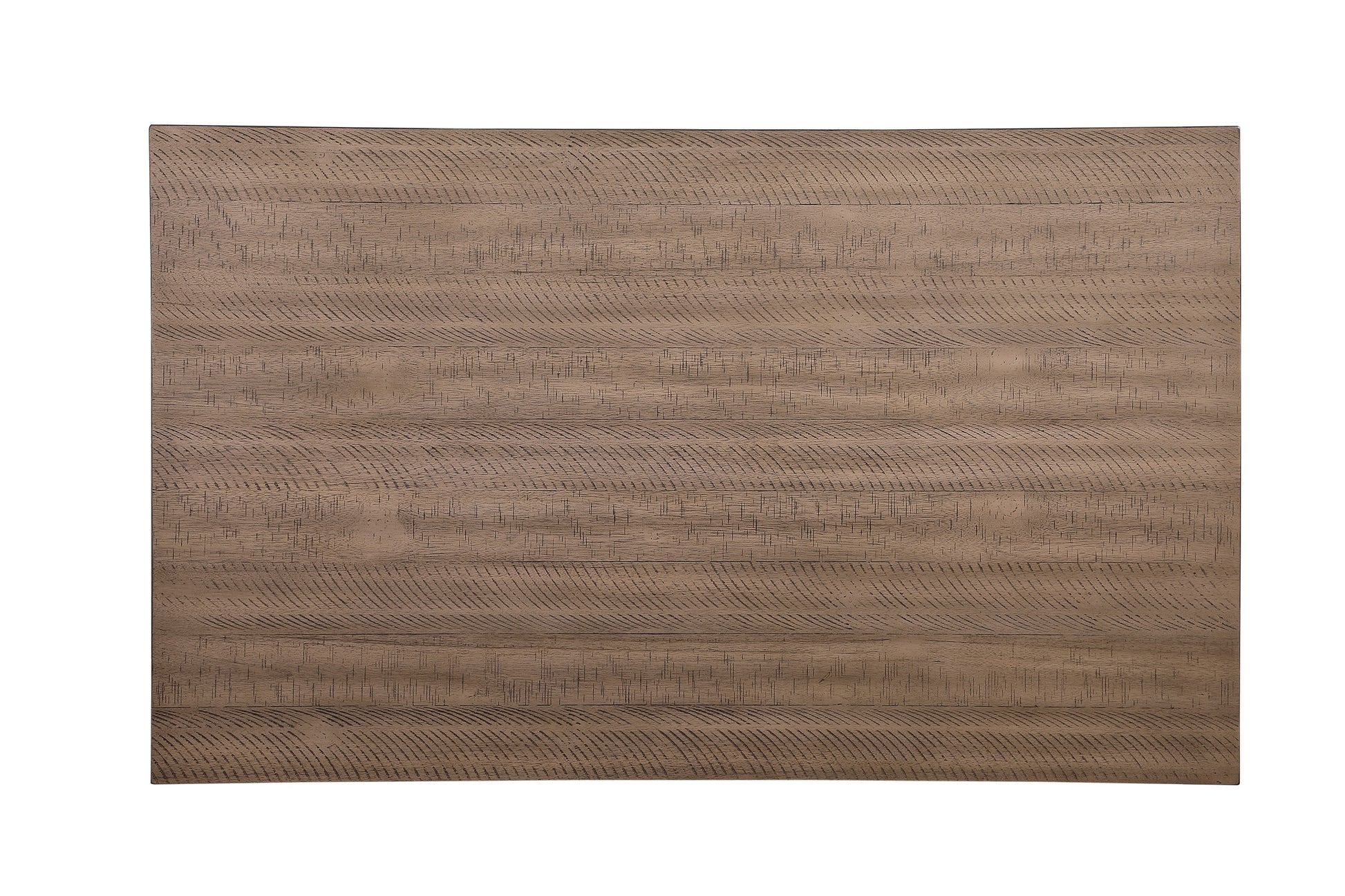 Made of high-quality acacia veneer and engineered wood, the table features a striking grayish white and brown two-tone finish. Its sturdy build ensures longevity, while the ample surface area accommodates meals and decorative accents.