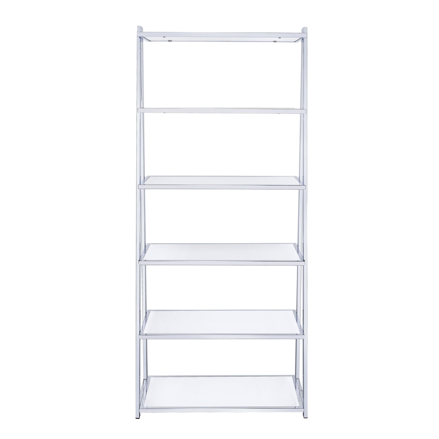 The sturdy metal frame and high gloss wood shelves ensure a balance of durability and visual appeal. This combination makes the bookshelf a lasting feature in your home.