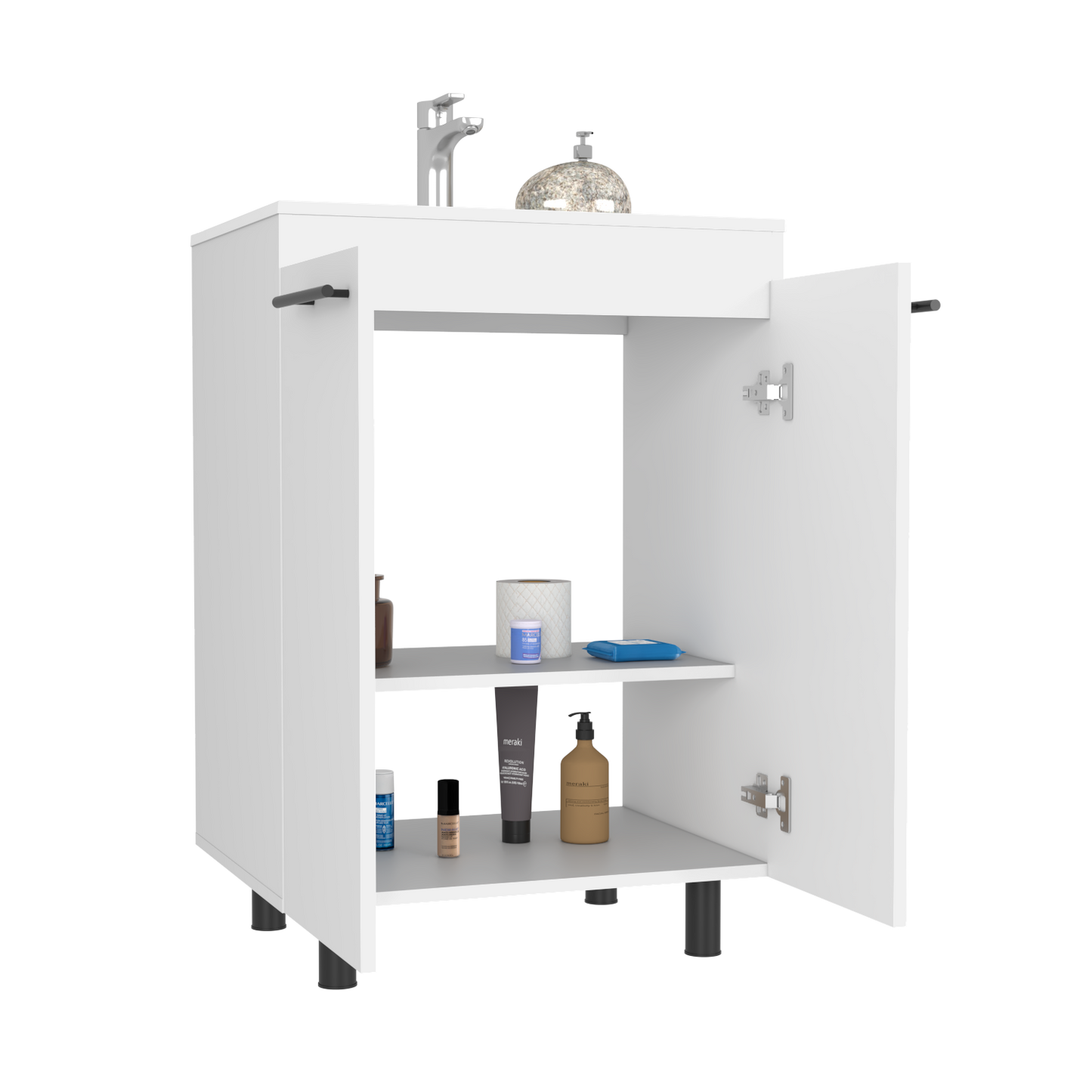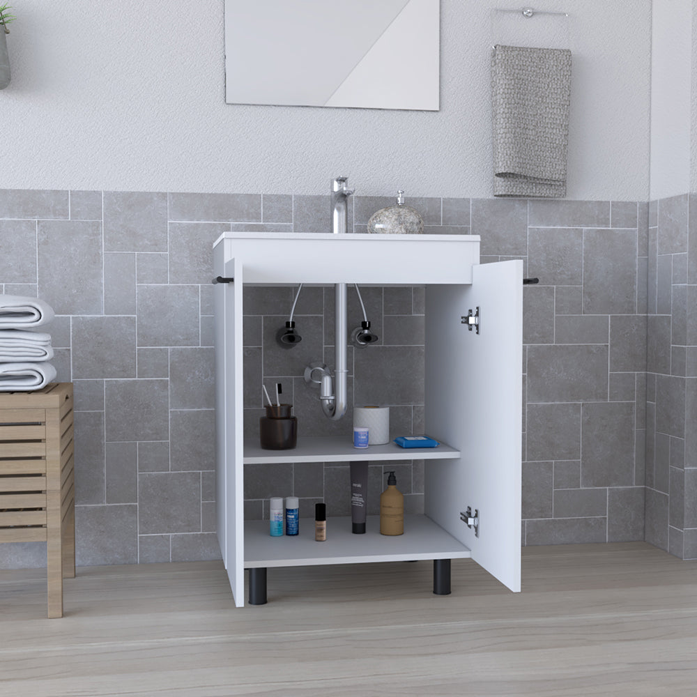 White Floor Cabinet for Bathroom Storage with Drop-In Sink